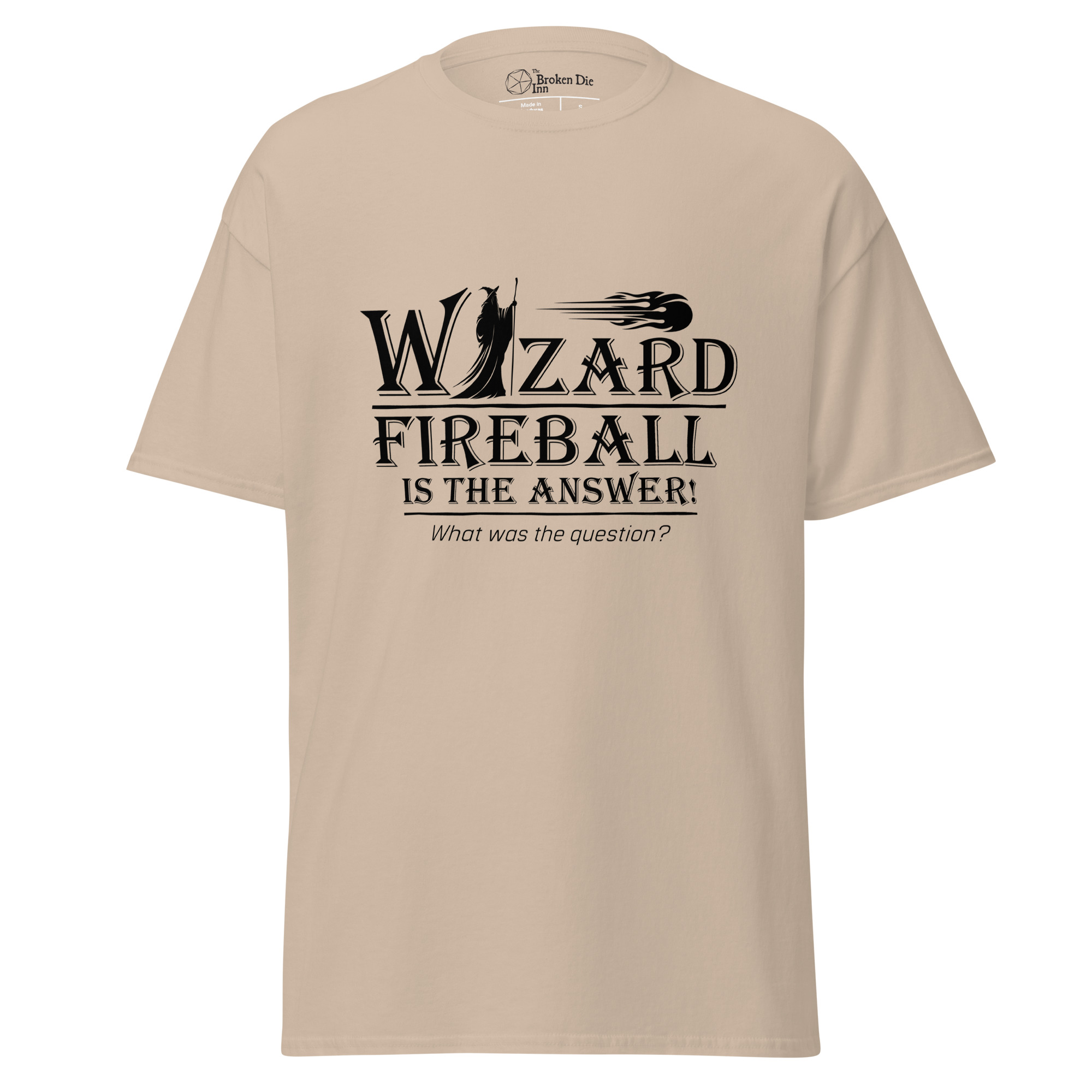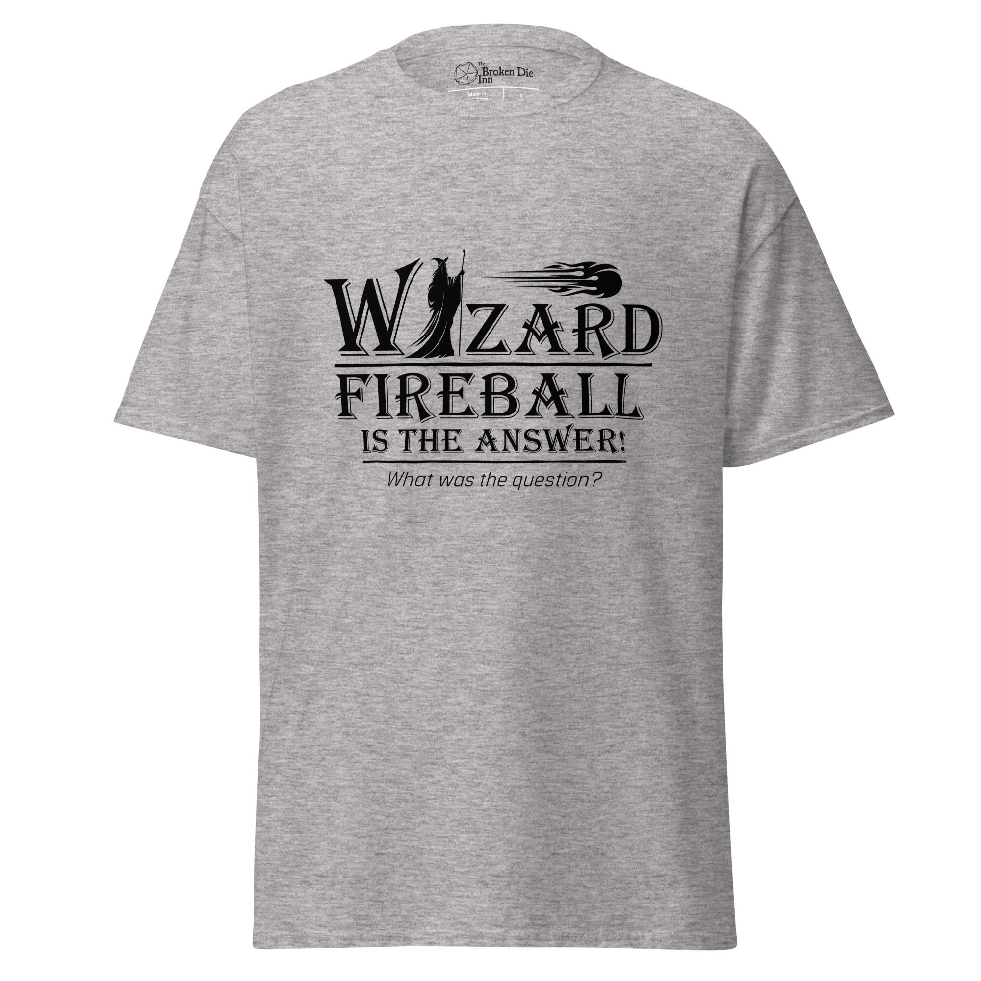 This shirt is for the spellcaster who doesn’t waste time debating solutions when a perfectly good explosion will do. Whether the problem is goblins, locked doors, or an argument that’s gone on far too long, the answer is already prepared.
